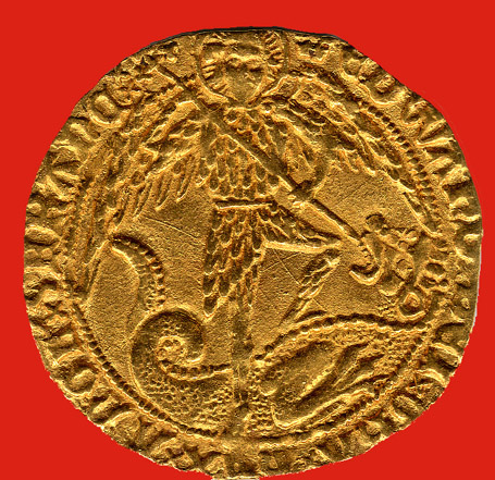 Dès lors le peuple cessa peu à peu de voir dans cette pièce une monnaie comme les autres et, bien qu'elle eût circulé comme numéraire jusqu'à Charles I (1625-1649), on tendit de plus en plus à la considérer comme un talisman pourvu d'une vertu médicinale propre. Et, fait peut-être unique dans l'histoire des monnaies, on changea la légende de l'ange d'or pour l'adapter à ses nouvelles fonctions de remède contre le mal ou le malin.