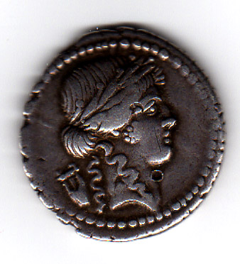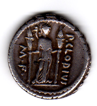 Le culte de Diane a été introduit à Rome par les Sabins. Le revers de ce denier pourrait rappeler les origines de la gens Claudia mais aussi se rapporter à la déification de César ou aux Ludi Apollinares qui se tenaient du 6 au 13 juillet de chaque année. César était né le 13 juillet 100 avant J.-C. Ce denier sera restitué par Trajan et existe aussi en aureus (Syd.1116) taillé au 1/40 L. (8,118 g.)